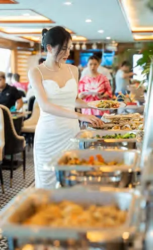 Enjoy a buffet seafood lunch on board