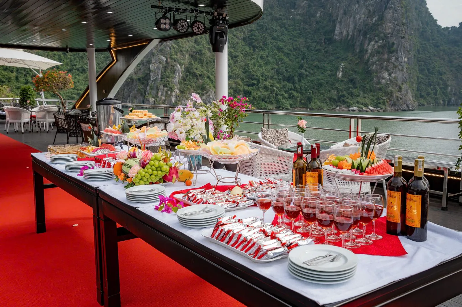 - 16:45: Enjoy a sunset party on the sundeck with fruits, cakes, juices, and tea as the cruise returns to port.