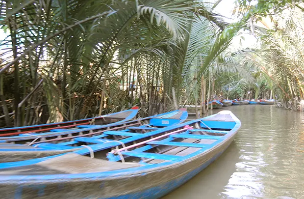 Ride a traditional sampan through Mekong canals and cycle through village paths
