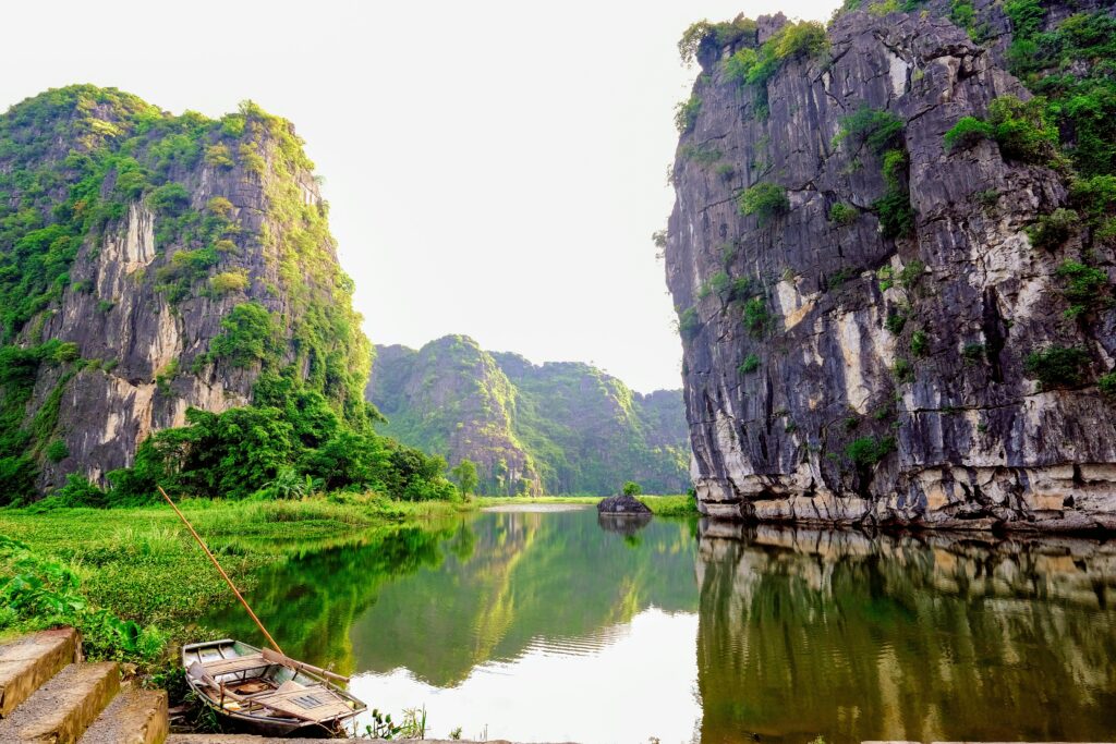 - 14:00–14:30: Transfer to Trang An. Enjoy a scenic boat trip (approx. 2 hours) through caves, limestone valleys, and tranquil waterways. Observe stalactites and local wildlife such as Le Le birds.